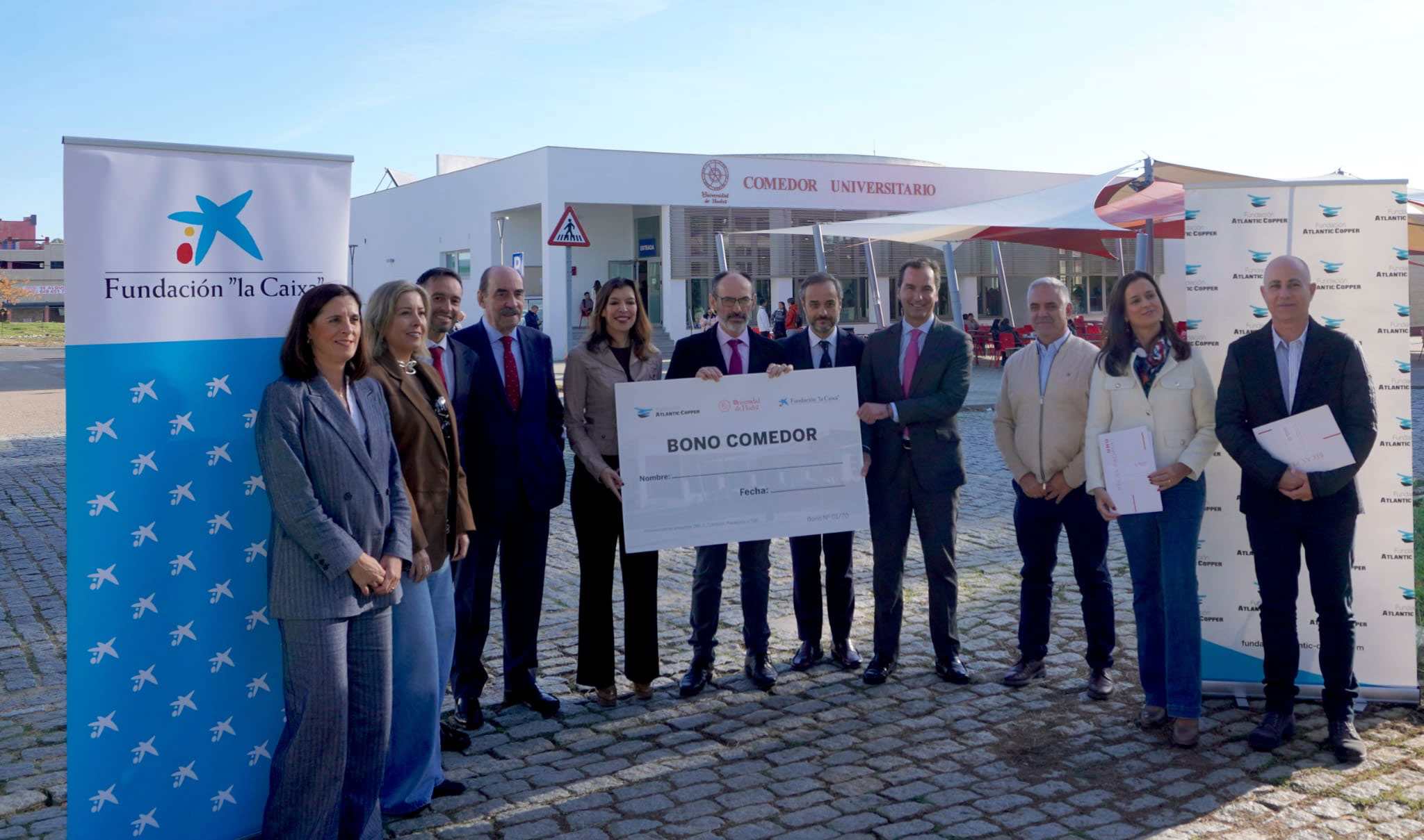 Las Becas Comedor de la Universidad de Huelva, impulsadas junto a la Fundación Atlantic Copper y la Fundación “la Caixa”, tienen como objetivo facilitar a estudiantes con recursos limitados el acceso a una comida diaria en el comedor universitario, contribuyendo así a su bienestar y continuidad académica.